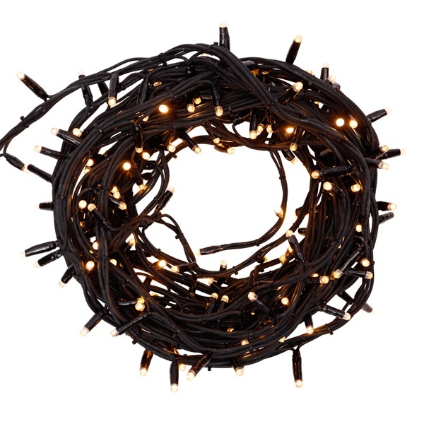 Влагозащищенная LED гирлянда Твинкл Лайт 20 метров с 240 светодиодами теплого белого цвета, черным проводом 303-326