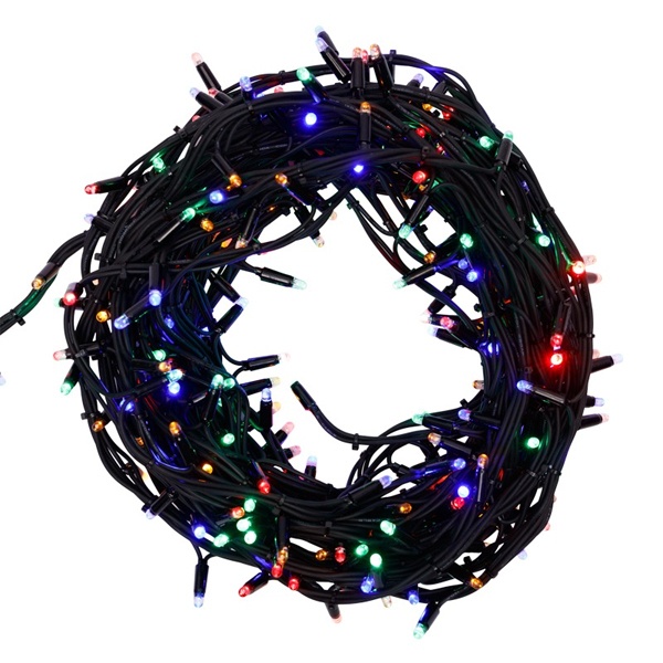 Влагозащищенная LED гирлянда Твинкл Лайт 20 метров с 240 светодиодами разноцветного цвета, черным проводом 303-329