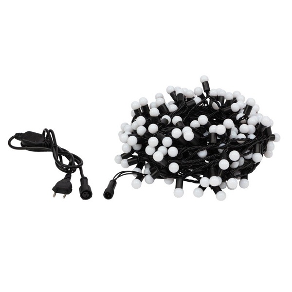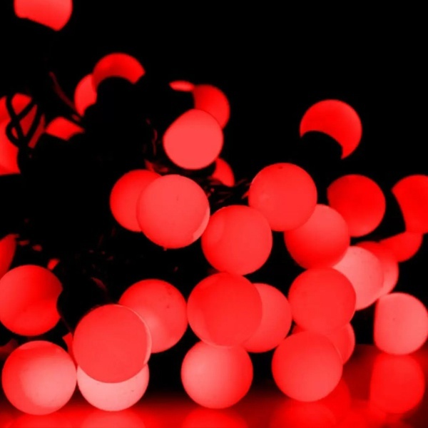 Гирлянда "LED шарики" представляет собой электрический шнур, имеющий длину 10 или 20 м, на котором располагаются сверх яркие светодиодные лампы, изготовленные в виде шариков с диаметром 1,3-1,75 см. Светодиоды по сравнению с миниатюрными лампами накаливания имеют целый ряд существенных преимуществ. Их отличает чистое и яркое свечение, огромный ресурс, прочность, незначительное потребление энергии, надежность.