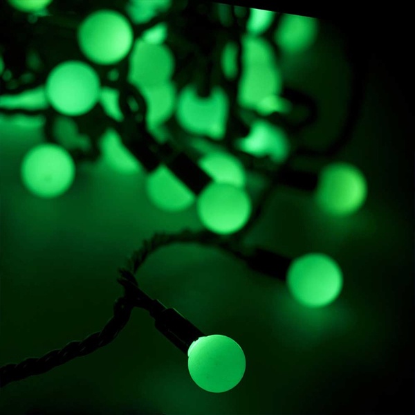 Гирлянда Мультишарики D17,5мм, 20м, черный ПВХ, IP65 230V 200LED, цвет зеленый