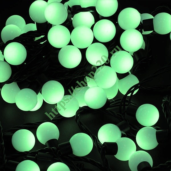 Данная гирлянда имеет зеленый цвет свечения светодиодов.