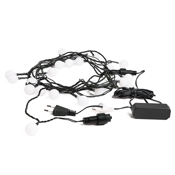 Данная гирлянда имеет длину 5м на которой расположено 25 шариков диаметром 18 мм с Белым цветом свечения светодиодов.