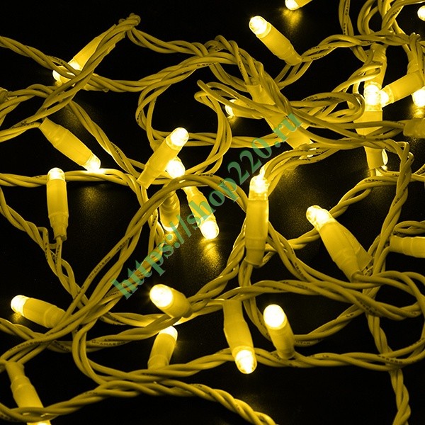 LED Гирлянда Нить длиной 10 метров, постоянное желтое свечение, белый ПВХ провод, 230В,с защитой IP44 305-161