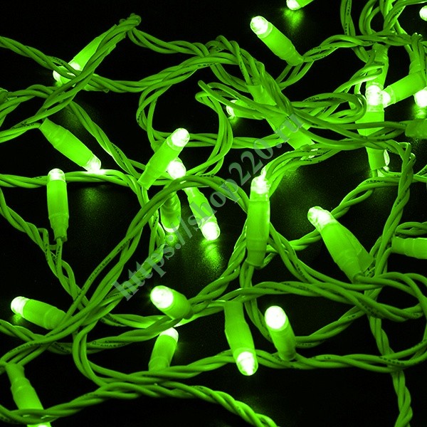 LED Гирлянда Нить длиной 10 метров, постоянное зеленое свечение, белый ПВХ провод, 230В с защитой IP44 305-164