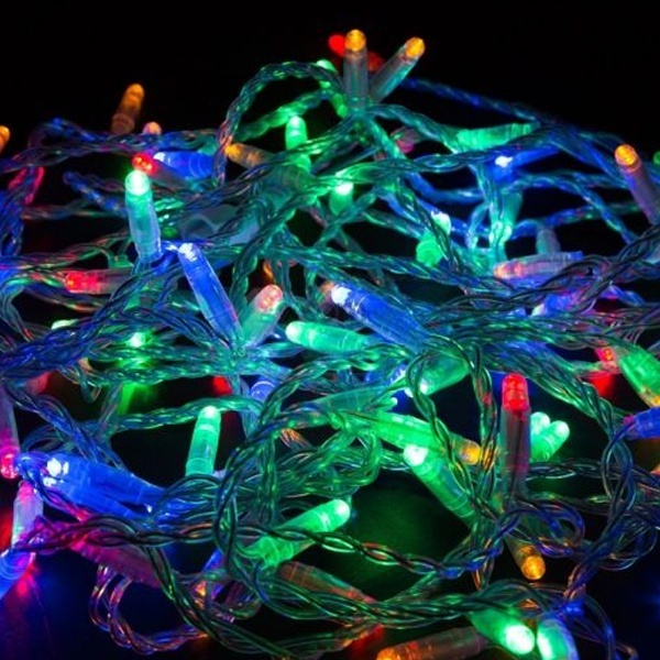 LED Гирлянда Нить длиной 10 метров, постоянное разноцветное свечение, белый ПВХ провод, 230В с защитой IP65 305-169