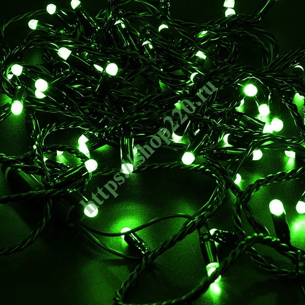 LED Гирлянда Нить длиной 10 метров, постоянное зеленое свечение, черный ПВХ провод, 230В с защитой IP44 305-174