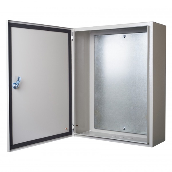 Щит распределительный ЩРНМ DEKraft; навесной; со сплошной задней монтажной панелью; номинальный ток до 630 А; ВхШхГ - 650х500х220 мм; материал – сталь; цвет - серый (RAL 7032); степень защиты – IP54. Щиты ЩРНМ предназначены для сборки силовых щитов, щитов управления и автоматики. В комплект поставки корпуса входит оцинкованная монтажная панель (толщина 1,5 мм), болты заземления на дверце и на корпусе, дверь с замком-защелкой и ключом. Ввод кабелей для всех щитов осуществляется снизу.