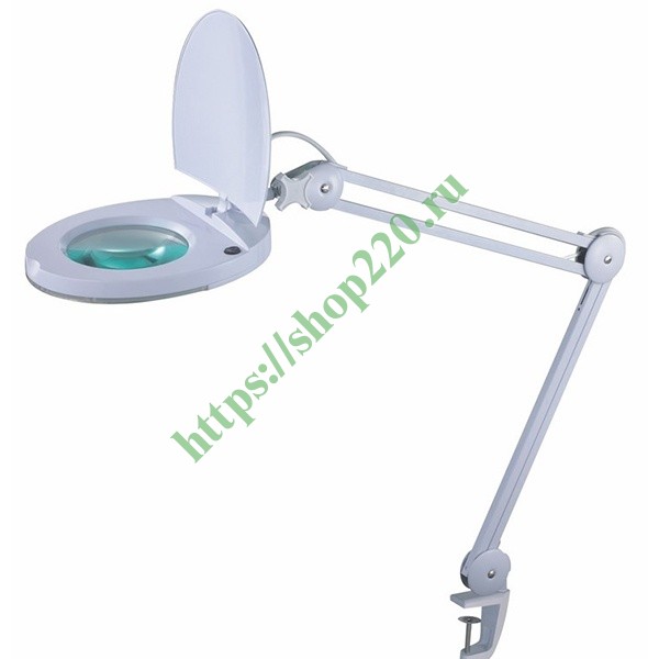 Лупа на струбцине, линза 8 диоптрий, с подсветкой от люминесцентной кольцевой лампы с цоколем G10q 31-0221