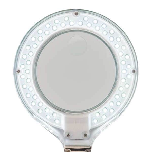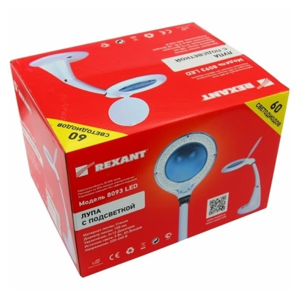 Лупа настольная малая 3Х +доп.12Х с подсветкой 60 LED, белая REXANT предназначена для визуального увеличения различных мелких предметов или их фрагментов.Она используется в косметологии, в тату-салонах, при выполнении ювелирных и радиомонтажных работ, при ремонте часов, в биологии и медицине, в швейном и вышивальном деле, для организации труда людей со слабым зрением, а также для других работ, где требуется дополнительное увеличение и подсветка рабочего поля.Такая оптическая система состоит из линзы, корпуса и бестеневой подсветки.
