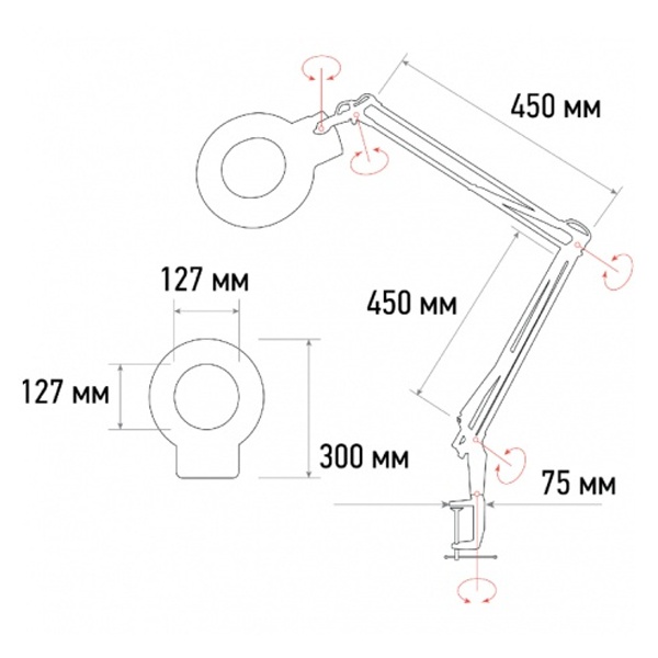 Лупа на струбцине Rexant круглая 5D с подсветкой 56 SMD LED, белая — удобный инструмент для работ, где важны точность и хороший обзор мелких деталей. Лупа крепится на струбцину, надежно фиксируется на краю стола или верстака и освобождает руки для пайки, сборки, ремонта или контроля качества. Встроенная светодиодная подсветка из 56 SMD LED равномерно освещает рабочую зону и помогает комфортно работать при недостаточном внешнем освещении.