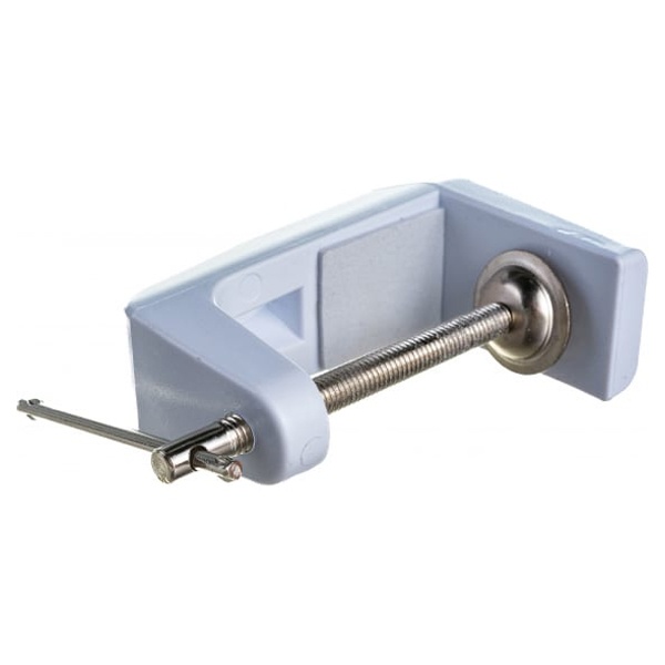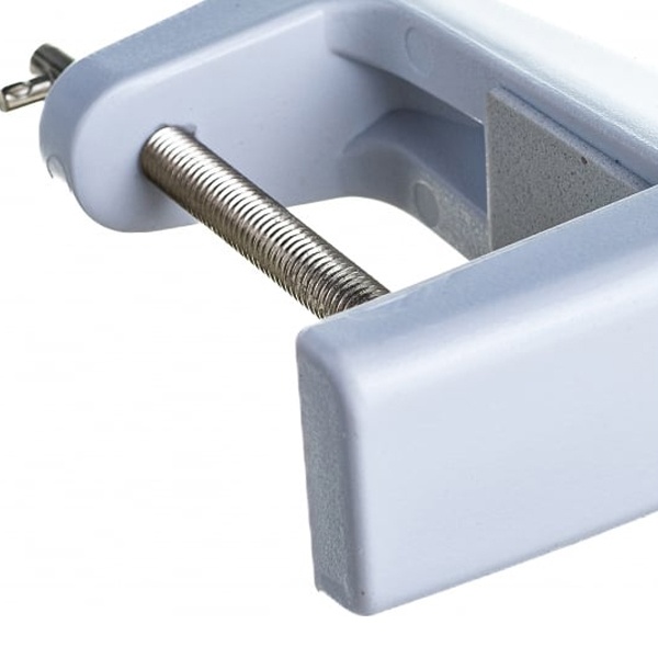 Струбцинное крепление белого цвета для лампы-лупы предназначено для крепления ламп-луп к столу и прочим горизонтальным поверхностям.
