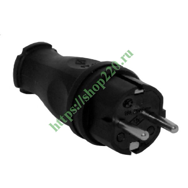 Вилка прямая каучуковая с заземлением IP44 T-plast 3101-301-0300