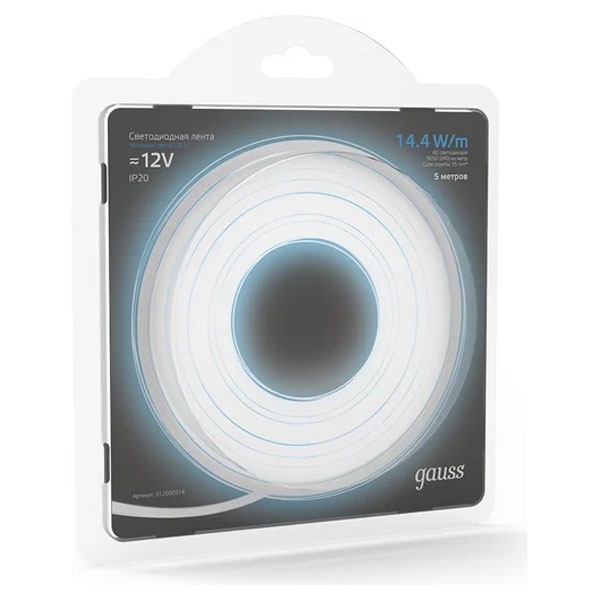Лента светодиодная Gauss 5050/60-SMD 14.4W/m 12V DC холодный белый IP20 (упаковка 5м) 312000314