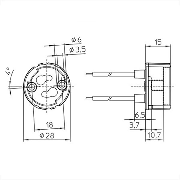 Патрон GX10 с проводом 0,75 кв.мм для газоразрядных ламп. 543267.01