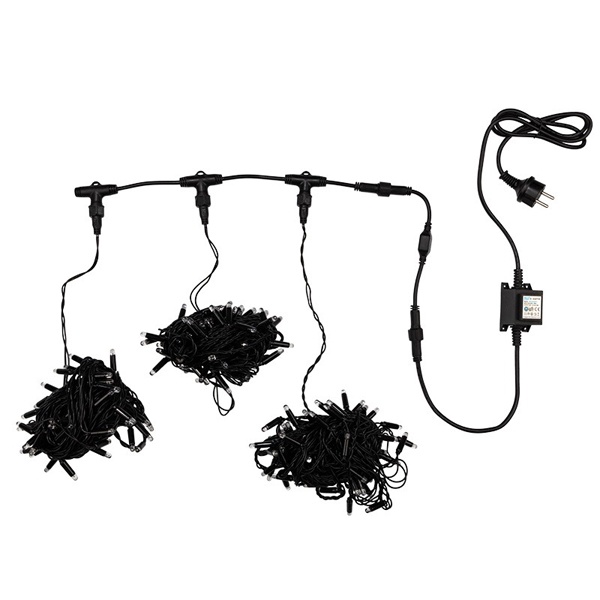 В качестве преимуществ гирлянды можно отметить следующие: более толстый и крепкий провод, хорошая влагозащищенность, высокое разнообразие цветовых решений. Также гирлянда почти не выделяет тепла, поэтому совершенно безопасна для деревьев и кустарников, а благодаря понижающему трансформатору, которым она укомплектована, гирлянда совершенно безопасна для людей!