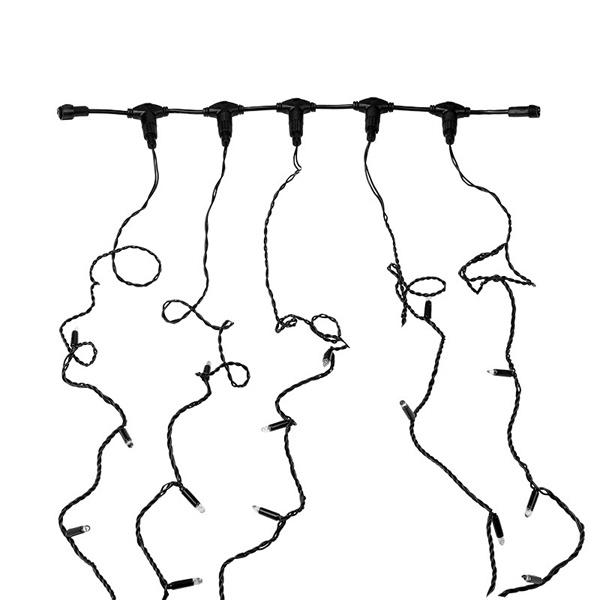 Данная гирлянда состоит из 5 нитей, представлена в белом цвете свечения светодиодов.