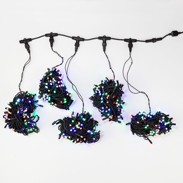Данная гирлянда состоит из 5 нитей, представлена в цвете свечения светодиодов мультиколор.