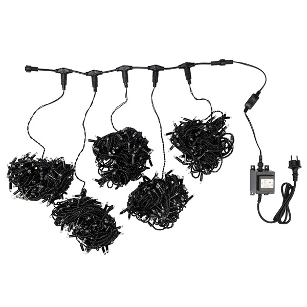 В качестве преимуществ гирлянды можно отметить следующие: более толстый и крепкий провод, хорошая влагозащищенность, высокое разнообразие цветовых решений. Также гирлянда почти не выделяет тепла, поэтому совершенно безопасна для деревьев и кустарников, а благодаря понижающему трансформатору, которым она укомплектована, гирлянда совершенно безопасна для людей!