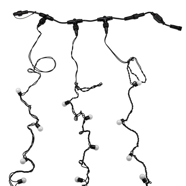 Данная гирлянда состоит из 3 нитей, представлена в цвете свечения светодиодов мультиколор, стоит отметить, что каждый шарик в данной гирлянде переливается 7-ю цветами.