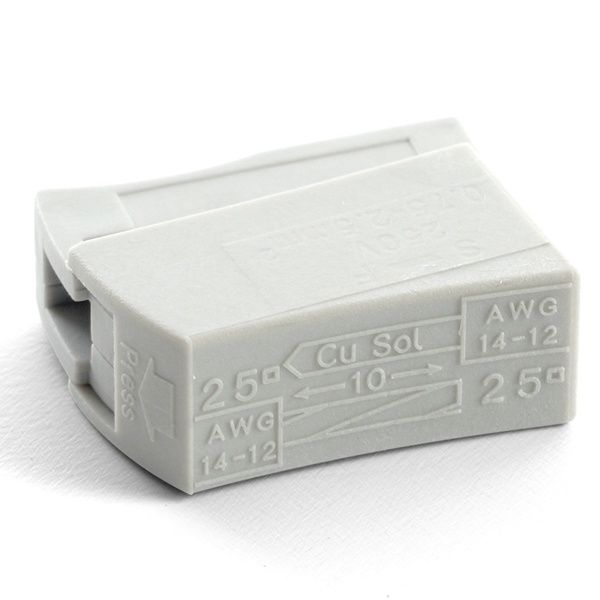 Клемма пружинная универсальная компактная STEKKER LD224-101, 2-проводная 1 - 2,5 мм2, 400В, 24A, без пасты, материал изделия нейлон, латунь. Тип провода одножильный/многожильный, материал провода латунь/медь, температура окружающей среды -35...+60C