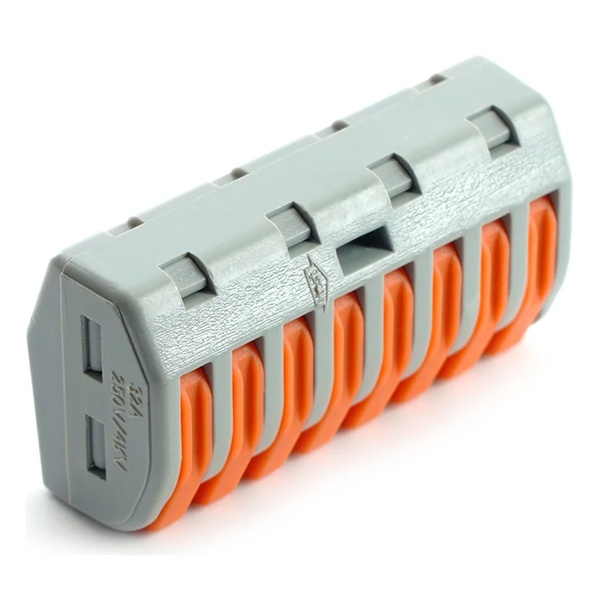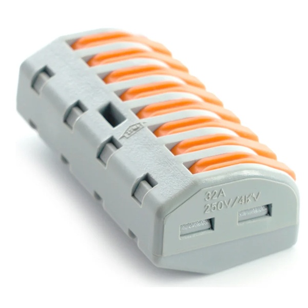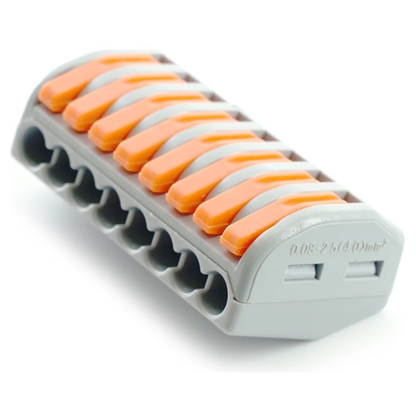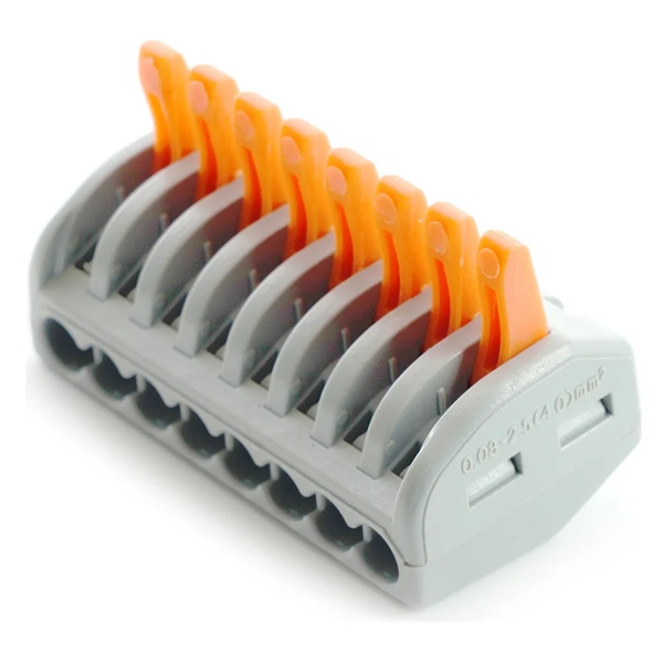 Клемма пружинная универсальная STEKKER LD222-418, 8-проводная 0,08 - 2,5/4 мм2, 400В, 24 A, 32 A, без пасты, материал изделия пластик, латунь. Тип провода одножильный/многожильный, материал провода медь, температура окружающей среды -20...+40C
