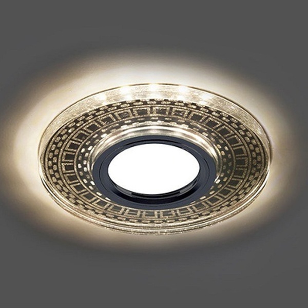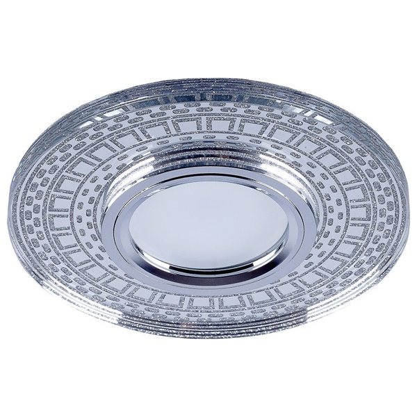Встраиваемый, декоративный, круглый светильник Ферон CD981 прозрачный-серебро с подсветкой из 15 светодиодов белого свечения, 230 Вольт, под лампу MR16 мощностью до 50 Ватт с цоколем G5.3 32437
