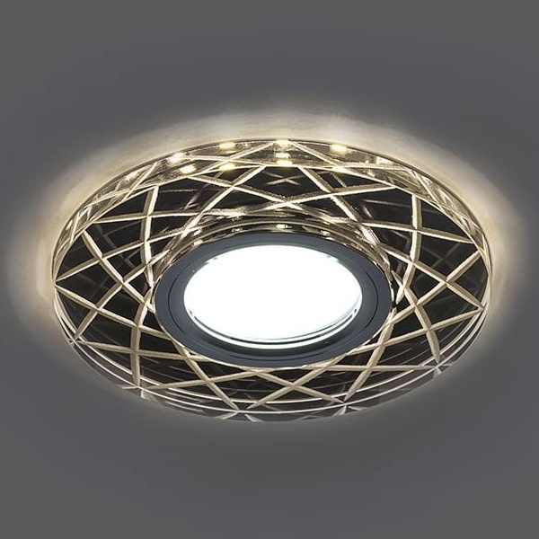 Встраиваемый, декоративный, круглый светильник Ферон CD983 прозрачный с подсветкой из 15 светодиодов белого свечения, 230 Вольт, под лампу MR16 мощностью до 50 Ватт с цоколем G5.3 32440