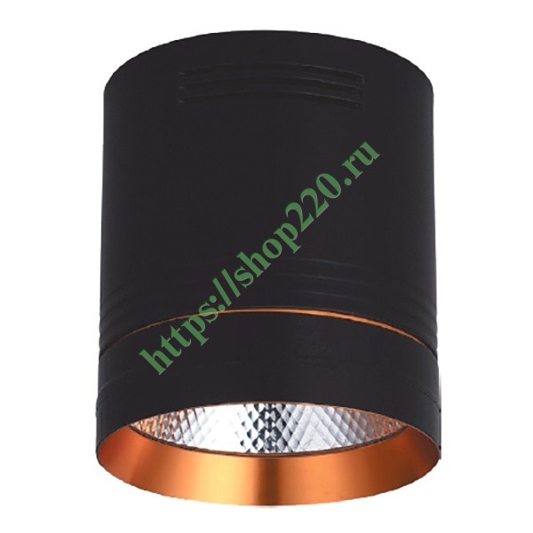 Накладной, цилиндрический, светодиодный светильник Ферон AL521, 20 Вт, белый свет, черный с золотым кольцом, 100x115 мм 32466