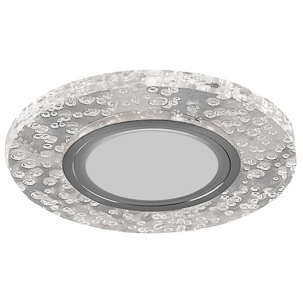 Декоративный, встраиваемый круглый светильник Ферон CD953 прозрачный с подсветкой из 15 светодиодов разноцветного свечения, 230 Вольт, под лампу MR16 мощностью до 50 Ватт с цоколем G5.3 32569