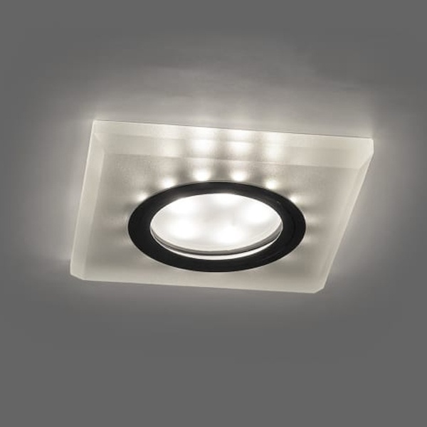 Встраиваемый, декоративный, квадратный светильник Ферон CD8170 белый матовый хром с подсветкой из 15 светодиодов белого свечения, 230 Вольт, под лампу MR16 мощностью до 50 Ватт с цоколем G5.3 32571