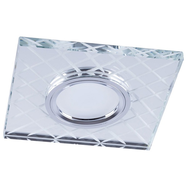 Декоративный, встраиваемый квадратный светильник Ферон CD984 прозрачный с подсветкой из 15 светодиодов белого свечения, 230 Вольт, под лампу MR16 мощностью до 50 Ватт с цоколем G5.3 32572