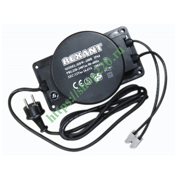 Данное устройство представляет собой понижающий трансформатор в герметичном металлическом корпусе, оснащенный шнуром для подключения в сеть и двумя проводниковыми отводами на выходе.