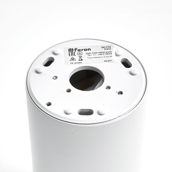 Накладной светильник-спот цилиндрической формы Ферон ML174 направленного света, под лампу GU10, напряжением 230 Вольт мощностью 35 Ватт, цвет корпуса белый 32632