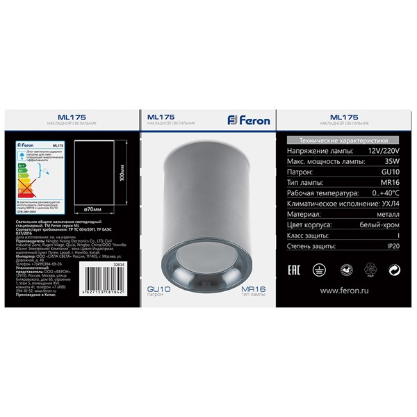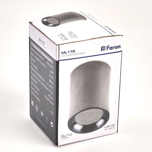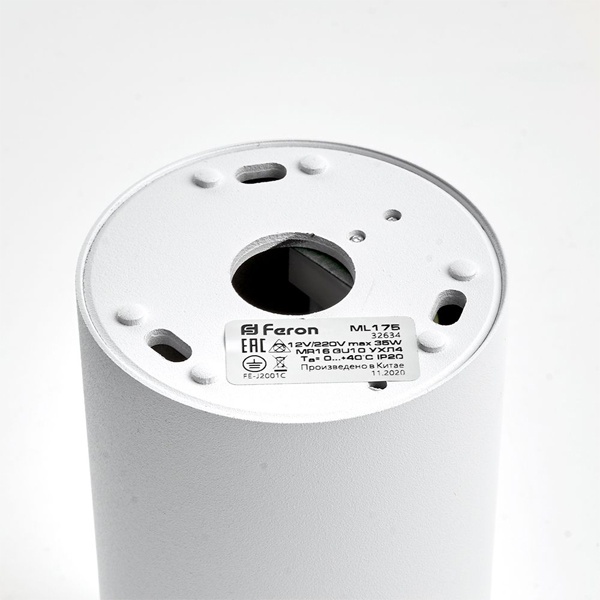 Светильник накладной под лампу, спот (ИПО) FERON ML175, GU10 35W, 230V, IP20, цвет белый, корпус металл, 70*70*100
