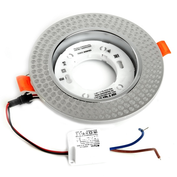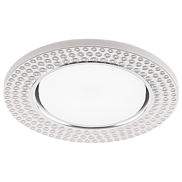 Встраиваемый прозрачный круглый светильник с декоративным узором цвета хром под лампу GX53 и белой светодиодной подсветкой, Ферон CD4029. 32652