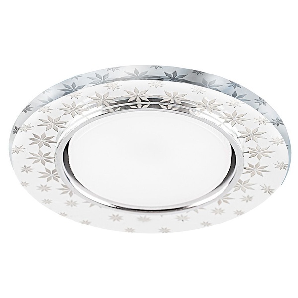 Встраиваемый прозрачный круглый светильник с декоративным узором цвета хром под лампу GX53 и белой светодиодной подсветкой, Ферон CD4030. 32653