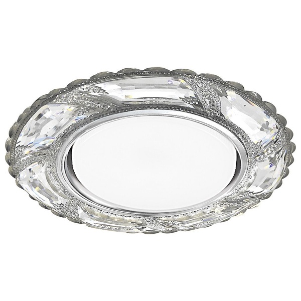 Встраиваемый круглый светильник, прозрачный с декоративным узором цвета хром под лампу GX53 и белой светодиодной подсветкой, Ферон CD4031. 32658