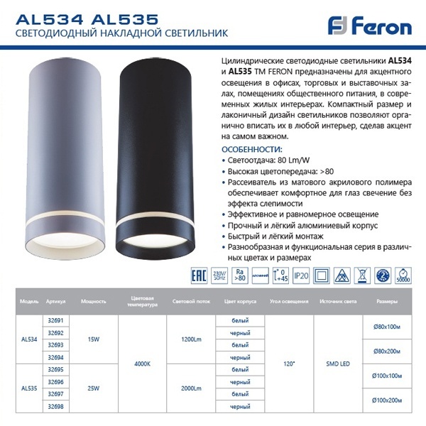 Цилиндрический светодиодный светильник AL535 Ферон используется для акцентного освещения в офисах, торговых и выставочных залах, помещениях общественного питания, в современных жилых интерьерах. Компактный размер и лаконичный дизайн светильников позволяют органично вписать их в любой интерьер, сделав акцент на самом важном.