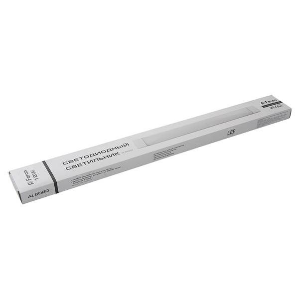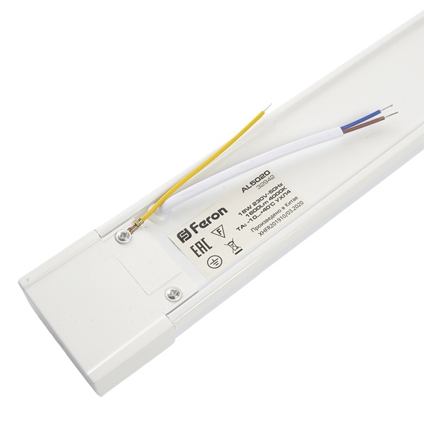 Светильник линейный светодиодный, (ДПО) FERON AL5020, 18W, 4000К (белый), 170-265V, 1200Lm, IP20, цвет белый, корпус штампованная сталь, рассеиватель пластик, 600*60*23 мм