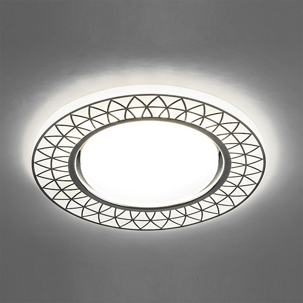 Круглый встраиваемый светильник со светодиодной подсветкой 4000К под лампу с цоколем GX53, белый матовый хром, Ферон CD9914 32982