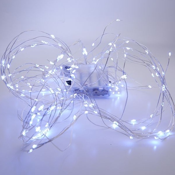 Гирлянда на елку FERON CL53, 200LED, (белый), статичная (постоянного свечения), 2м+1м прозрачный шнур, расстояние между светодиодами 10см, IP20, 10.2W, на батарейках 4*AA, батарейки отсутствуют в комплекте, последовательное подключение - НЕТ