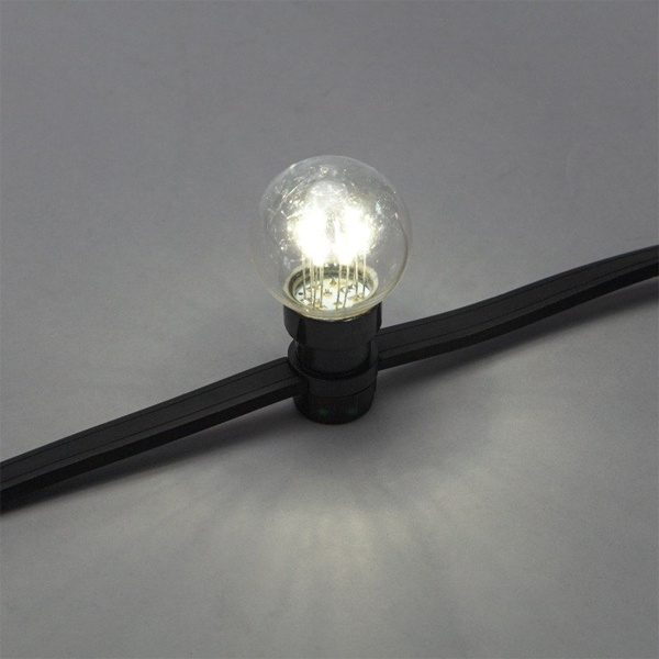 Гирлянда "LED Galaxy Bulb String" внешне схожа с гирляндой Belt-light. Отличается она тем, что уже готова к использованию, на шине через каждые 33 см уже смонтированы прозрачные лампочки диаметром 45 мм, в каждой из которой есть 6 диодов. Благодаря своей степени защиты гирлянда может быть использована как в помещении, так и на улице, даже в сильный мороз.