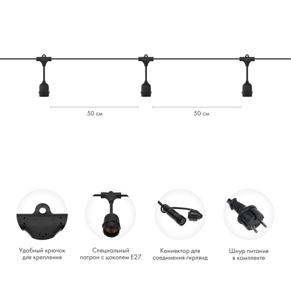 «Белт-Лайт» – популярная гирлянда для украшения фасадов домов, зданий, создания перетяжек между деревьями, столбами. Также такие гирлянды широко используются в украшении кафе, ресторанов, на свадебных площадках и в фотозонах. 20-метровый шнур оснащен 40 патронами с цоколем Е27. Патроны располагаются на иллюминационном кабеле с шагом 50 см. Для подключения к сети предусмотрен 3-метровый шнур с евровилкой. Для удобства использования предусмотрена возможность соединения гирлянды до 10 комплектов. Провод находится в надежной изоляции из морозостойкого каучука. Вся конструкция защищена от влаги и пыли по стандарту IP65, поэтому предполагается размещение как дома, так и на улице. Гирлянда длиной 20 метров станет прекрасным украшением интерьера или экстерьера.