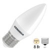 Энергосберегающая LED лампочка свеча мощностью 8 Ватт с цоколем E27 теплый белый свет 33218