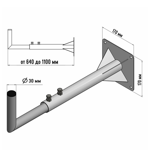 Регулировка выноса кронштейна позволяет подобрать необходимый вылет крепления антенны или спутниковой тарелки к стене.