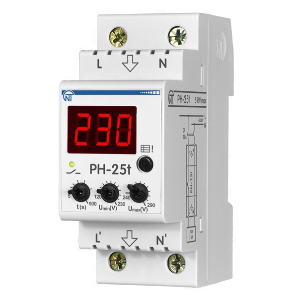 Двухмодульное однофазное реле напряжения РН-25Т (3425600025t), ток нагрузки 25 А на DIN-рейку 3425600025т