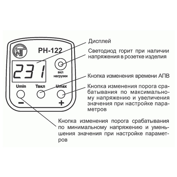 Обеспечивает отключение защищаемого оборудования, если значение напряжения сети выходит за пределы. Индицирует значение напряжения сети и наличие напряжения в розетке изделия.