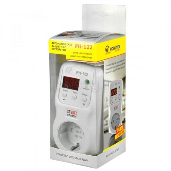 RN-122 используется для защиты бытовой техники (оборудования) мощностью до 3,6 кВт (холодильников, кондиционеров, стиральных машин, теле-аудио техники и т.п.) от недопустимых колебаний напряжения в сети и последствий обрыва нейтрали.