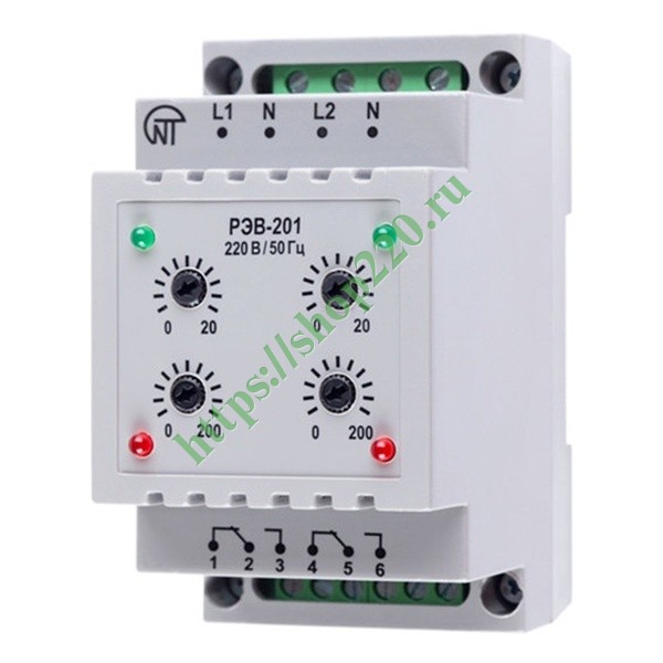 Устройство состоит из двух независимых реле времени (двух каналов). Отсчет выдержки времени каждого канала начинается с момента подачи питания на соответствующий канал.