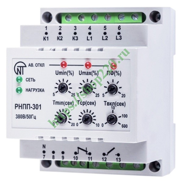 Реле напряжения РНПП-301 предназначено для защиты трехфазных потребителей от основных видов аварий в электрической сети, таких как: